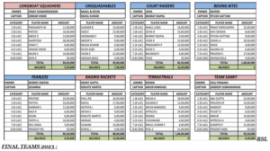 The excitement surrounding Bangalore Squash League 2023 continues to build as the player auction is scheduled for June 2nd, Friday, at the Karnataka Badminton Association (KBA). A total of 120 players will go under the hammer, with 64 talented individuals being selected to join the teams. Each team will consist of eight players, including a substitute, ensuring intense competition and strategic gameplay throughout the league.