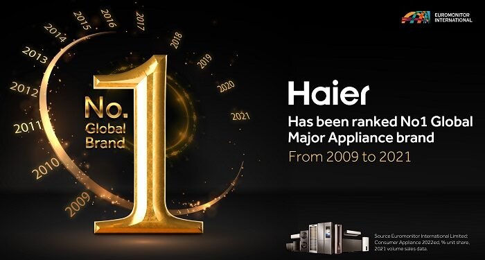 - Haier has been recognized as the number one brand globally in major appliances in 2021 for the 13th consecutive year, by Euromonitor International