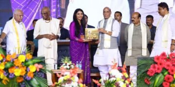 National Rajnath Singh inaugurates Gita Dana Yajna at ISKCON Sri Rajadhiraja Govinda Temple on the occasion of Gita Jayanti December 5, 2022