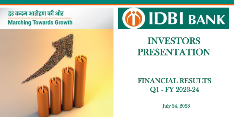 IDBI Bank today, announced its quarterly results for Q1 FY24. The Net Profit stood at ₹1,224 crore for Q1 FY24, registering a strong growth of 62% YoY. The operating profit stood at ₹3,019 crore, with a YoY growth of 47%. NIM was recorded at 5.80%, with a YoY growth of 178 bps and the Net Interest Income stood at ₹3,998 crore with a YoY growth of 61%. Cost of Deposit stood at 4.12%. CRAR stood at 20.33% with YoY growth of 76 bps. Return on Assets (ROA) was recorded at 1.49% (YoY growth of 46 bps) and Return on Equity (ROE) stood at 18.63% (YoY growth of 383 bps). Net NPA stood at 0.44% as against 1.26% as on June 30, 2022, down by 82 bps. Gross NPA at 5.05% as against 19.90% as on June 30, 2022, down by 1485 bps. PCR stood at 98.99% as against 97.78% as on June 30, 2022, up by 121 bps.