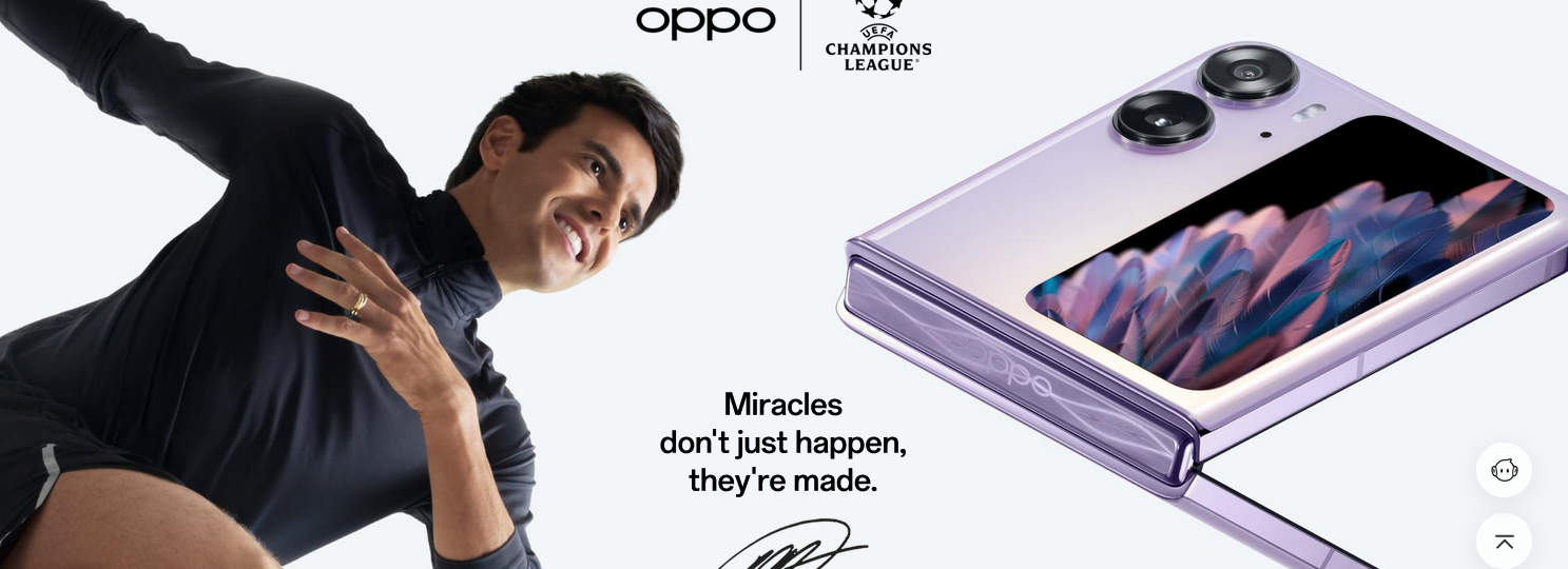 “We are thrilled to welcome Kaká as OPPO Global Brand Ambassador for the UEFA Champions League 2022-23 season,” said Elvis Zhou, OPPO Overseas CMO. “Partnering with a global sporting event of the caliber of the UEFA Champions League gives OPPO an unrivaled opportunity to share our mutual spirit of inspiration with audiences around the world. We believe miracles don’t just happen, they are made of expertise and perseverance. With Kaká, the witness and creator of miracles, joining the OPPO squad this year, we will be better positioned to communicate and engage with our global fans while inspiring them to enjoy, experience, and share miracle moments from their favorite football matches.”