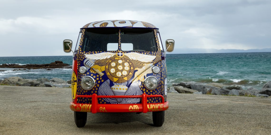 Hieronimus had painted the original 1963 Standard Microbus in 1968, after an invitation from the van’s owner, who was using it to haul his band to the festival and wanted a ‘magic bus.’ It became a symbol of the Woodstock Art and Music Fair and greater generational call for peace, love and unity after a snapshot of the van by the Associated Press was widely circulated in newspapers and magazines across the country. The van even appeared in the liner of the official Woodstock album.
